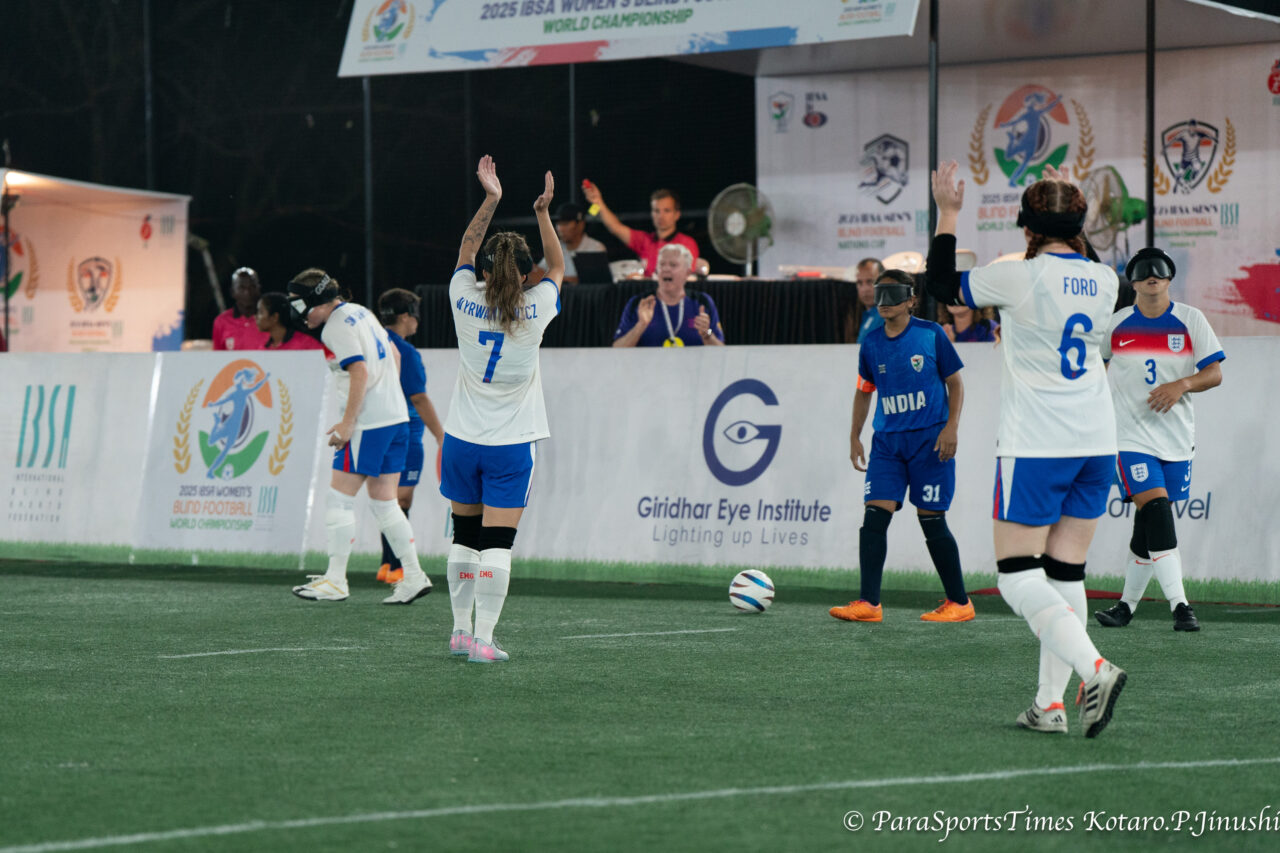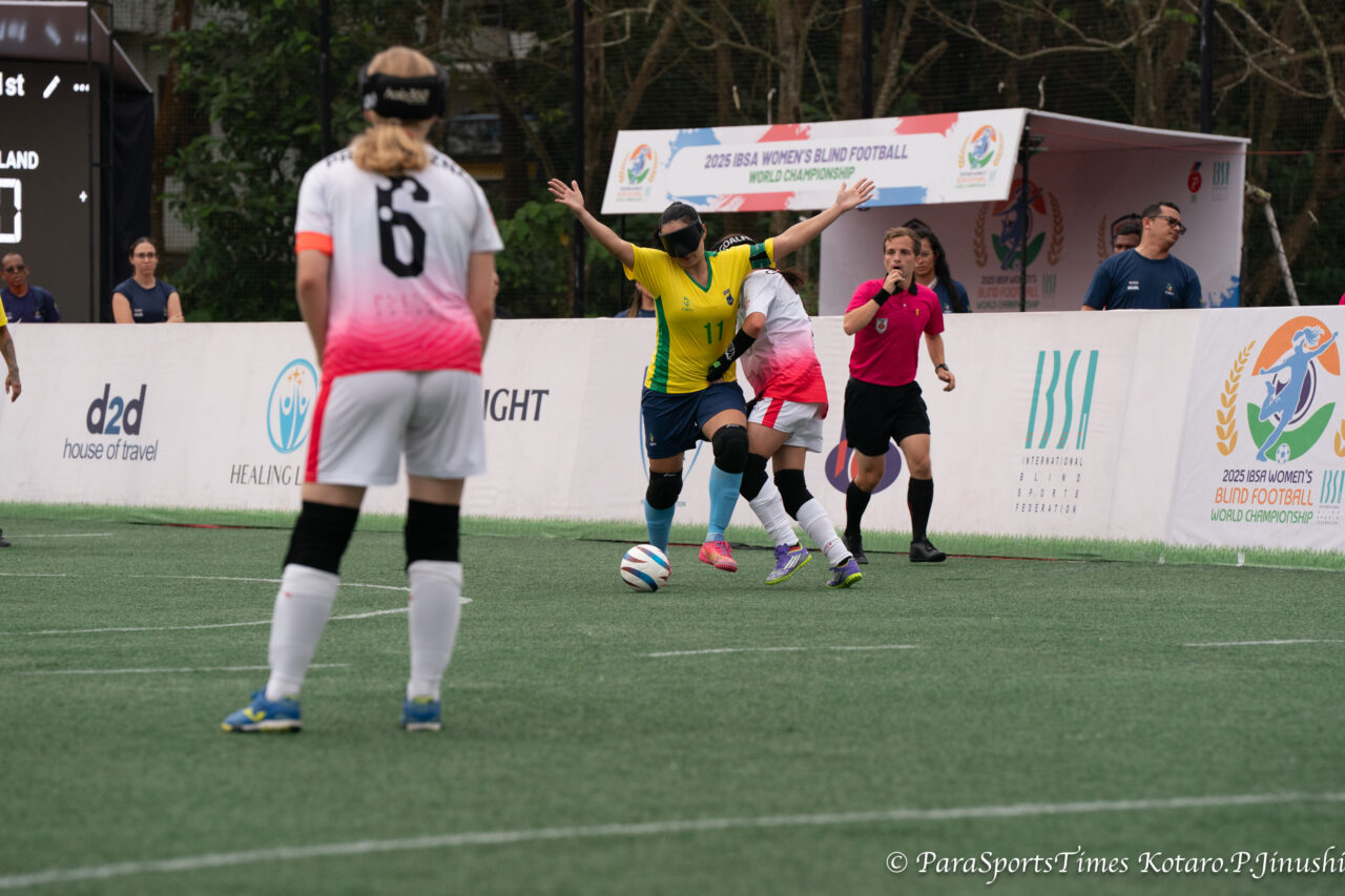 10月8日 コチ(インド)。IBSAブラインドサッカー女子世界選手権2025 四日目、グループAでは決勝トーナメント進出をかけてブラジル対ポーランド、イングランド対インドがグループBでは日本対アルゼンチン、カナダ対トルコが順位をかけて対戦した。その結果、10月10日の準決勝はイングランド対日本、アルゼンチン対ブラジルのカードとなった。開催国インドは5位決定戦でトルコと対戦する。グループリーグ最終順位は以下の通り。