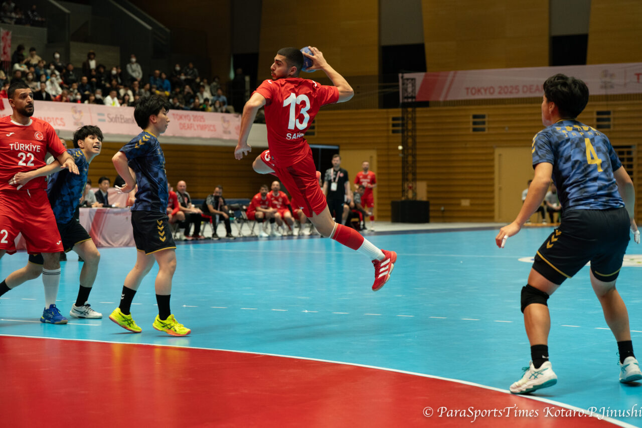 デフハンドボールはGK1人にコートプレーヤー6人で1チーム。健常者のハンドボールと同じルールが適用される。デフリンピックでは1969年に初めて採用されている。2022年カシアス・ド・スル大会に続いて今回も8カ国が参加する。8カ国を4カ国づつ2つのグループに分て総当たりで戦う。その順位にしたがって決勝トーナメントを戦い、1位から8位まで順位をつける。日本は、ドイツ、トルコ、ブラジルと予選ラウンドAグループで戦う。デフハンドボール日本代表は、23年12月に本格始動。トライアウトで人をあつめこの試合が初の国際試合となる。相手はサムスン2017デフリンピックで金メダルの経験もある現在世界ランキング4位のトルコだ。