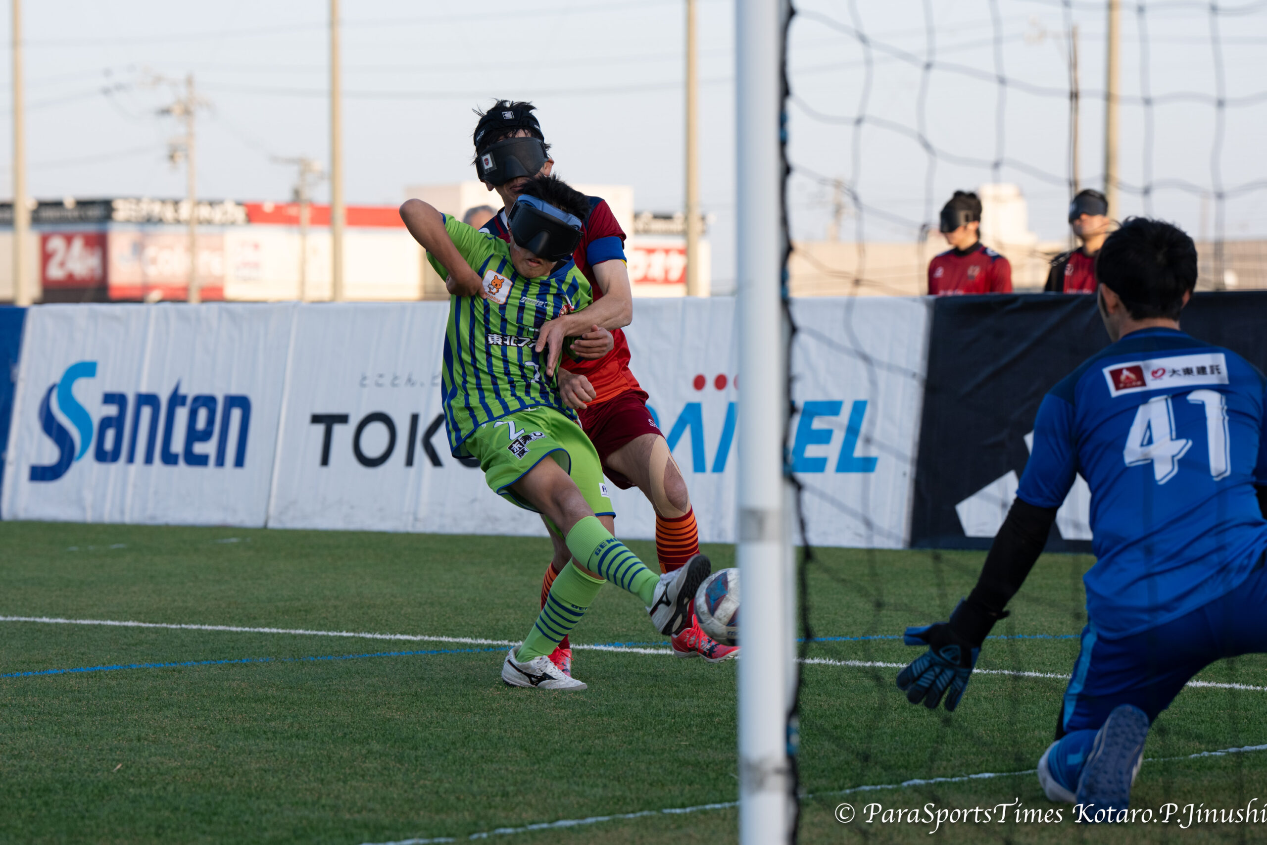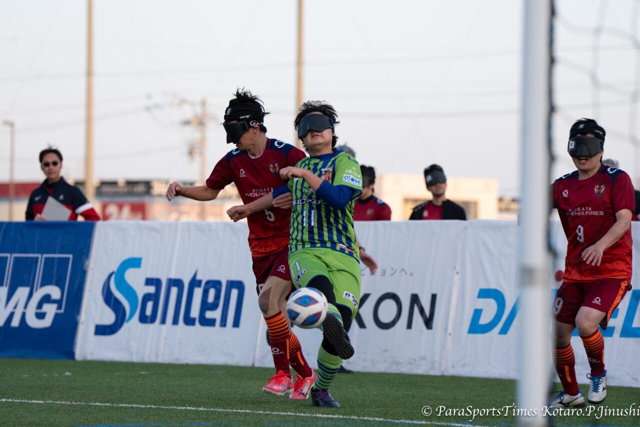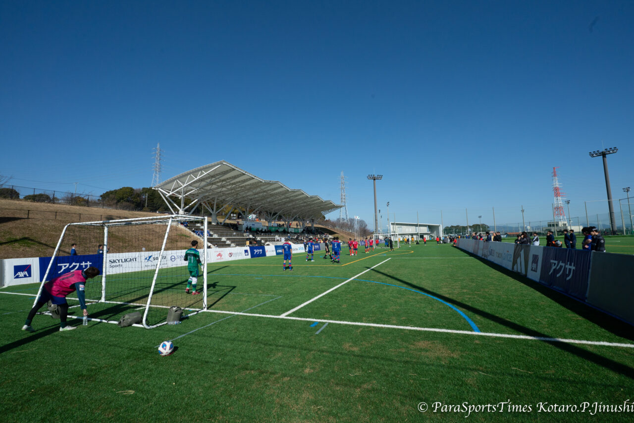 浜松というと遠州のからっ風。ともかく風が強く寒い会場という記憶しかない。ところが今日、1月17日は「春か?」と思うくらい穏やかな温かい1日。そんな中、第23回 アクサ ブレイブカップ ブラインドサッカー日本選手権の準決勝ラウンドが静岡県浜松市のサーラグリーンフィールド(浜北平口サッカー場)にて開催された。初日は準々決勝の4試合が行われ、品川CC パペレシアル、free bird mejirodai、コルジャ仙台、A-pfeile広島BFCが準決勝に駒を進めた。