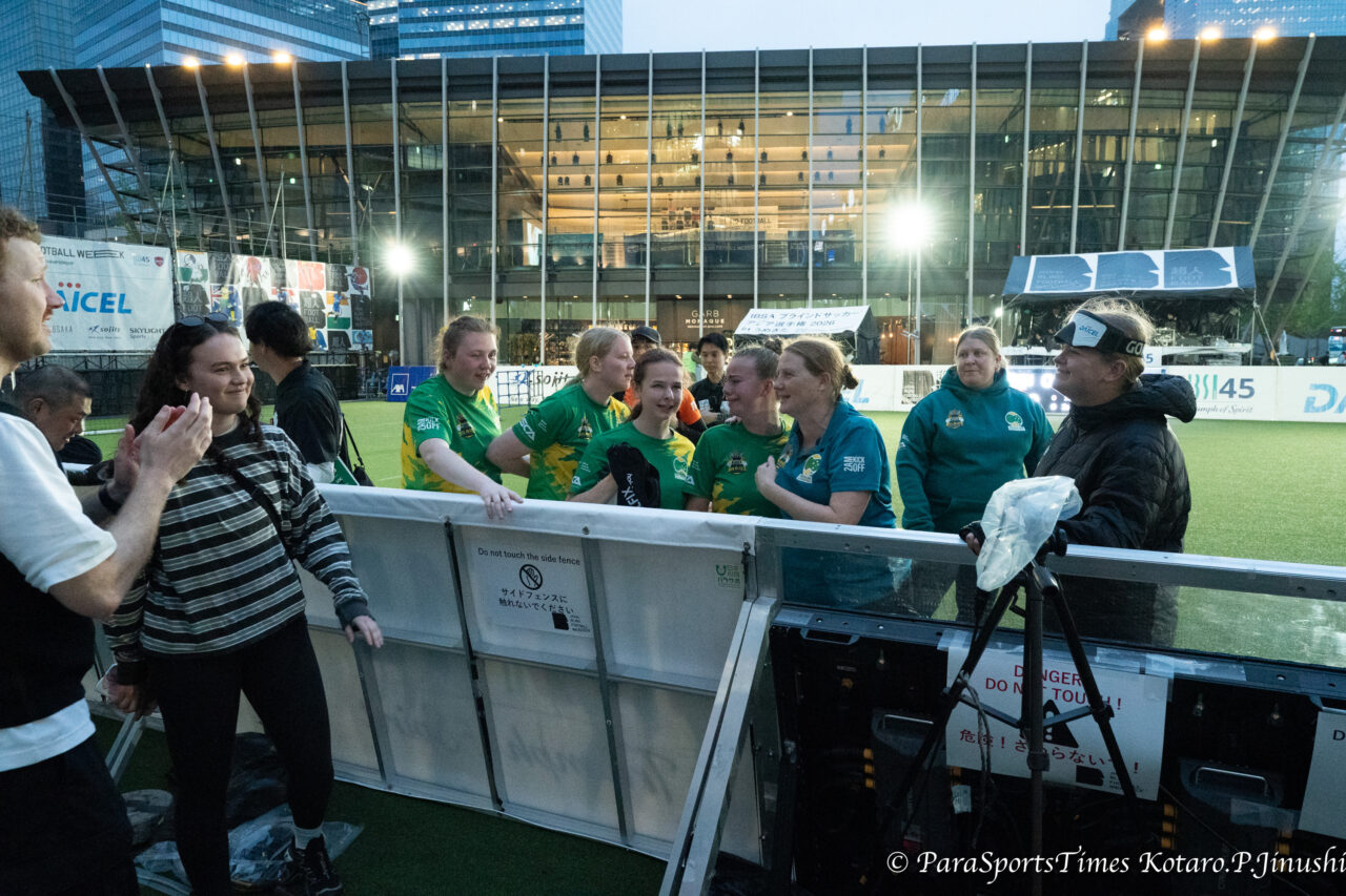 試合後、Parkesgはチームメイトに対して「一緒に戦えて誇りに思う。様々な想いや、悔しさ、ただただ一緒にここいることに感謝するし、これ以上にないほど我々はやり尽くした」と吐露した。彼女は「The Bilbies(オーストラリアブラインドサッカーチームの愛称)」の初期から加わったメンバーの一人。「ブラインドサッカーは何者にも代え難い、自信を高めるにもってこいのスポーツ」で、心底このチームを愛しているとチームへの愛情を語る。彼女の目標は2032年にブリスベンで開催されるパラリッピックだ。LAパラリンピック28では見送られた女子のブラインドサッカー。現在のペースで世界選手権が開催されると採用にグッと近づくと思われる。「(ブリスベンパラで採用され、ホスト国として参加することは)非常に大きなミッションだ。われわれはまだ端緒についたばかり。前進あるのみ!」と力強く語った。彼らは去年まで公的な資金援助は0。全て自分たちで費用をまかっている。前回はCoachで来日し、今回はガイドを務めたHepworthは「男子代表に対してやっと20,000AUD(約220万円)の補助が今年ついた」と語った。資金面、社会の認知はまだこれからだが、ブリスベーンパラリンピックに向けて今後のBilbiesの躍進に期待する。