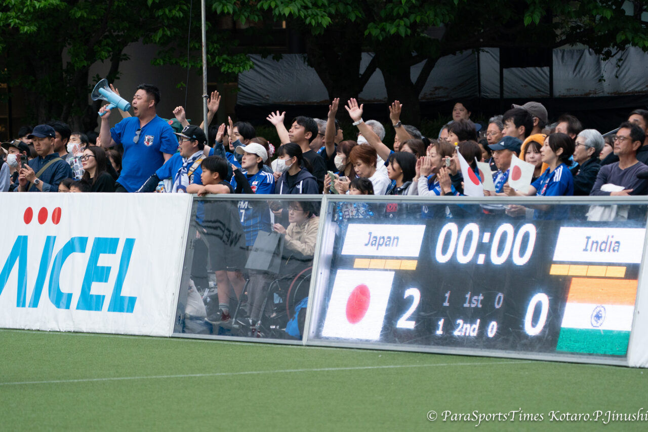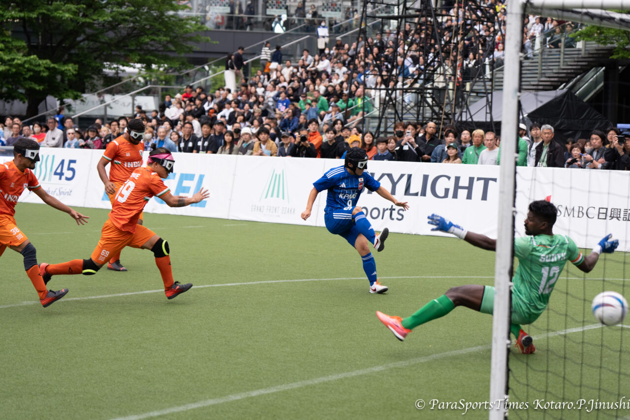 4月19日大阪駅に隣接する大阪グランフラントうめきた広場で開催されるIBSA ブラインドサッカー男子アジア選手権 2026 in うめきたが日本対インドで7日間の戦いの火蓋が切って落とされた。この戦いで優勝したチームが、オリンピック、パラリンピック含めて最初のLA28のチケットを手にする。日本は2005年を最後に11回アジア選手権に出場して一度として優勝していない。「いつも中国、イラン、タイといったライバル国に夢を絶たれてきました。だからこそ、アジアで勝つこと、優勝することに人一倍強い想いがあります。」とキャプテンの川村怜が開幕前コメントで語ったようにここで優勝してパラリンピックのチケットを取ることが日本にとって悲願だ。